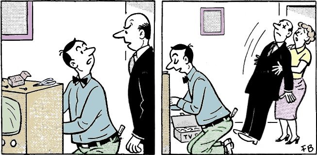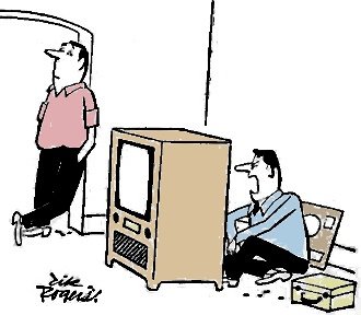 TV repairmen - often justified on both sides. I took the liberty of colorizing them
