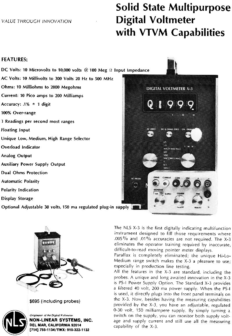 Non-Linear Systems, Inc. NLS X-3 Multipurpose Digital Voltmeter