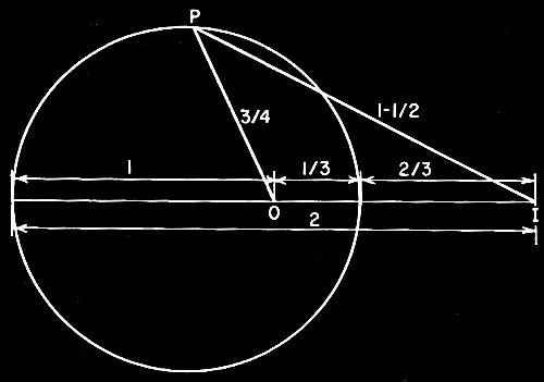"out" in the pattern of circles, will be where the angle θ between OP and