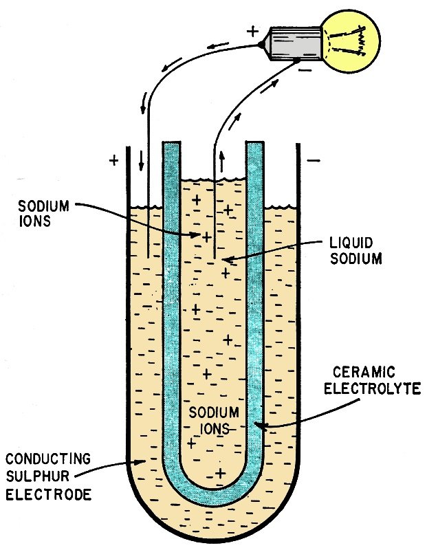 The active elements of the new cell are sodium and sulphur. These are separated