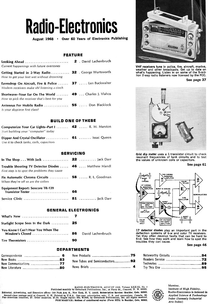 August 1968 Radio-Electronics Table of Contents