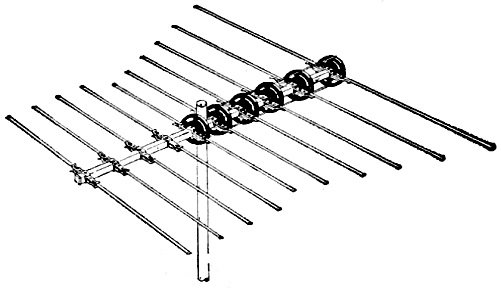 bands simultaneously. The uhf portion utilizes full-wavelength dipoles. Round boom