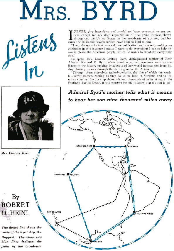 of Byrd's radio installation and encouraged amateur radio operators to monitor and