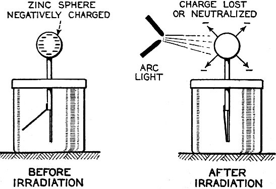 repel, and at the right a sphere acted upon by light from an arc with the gold-leaf