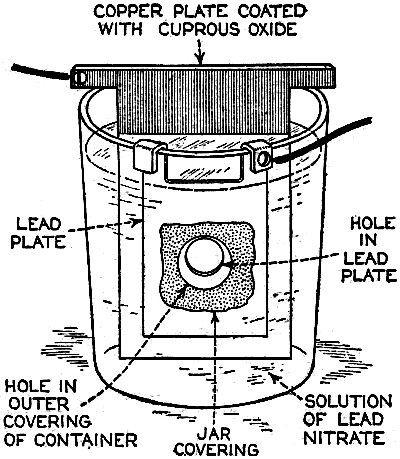 part of the photo-cell. The second and negative terminal is the solid copper plate