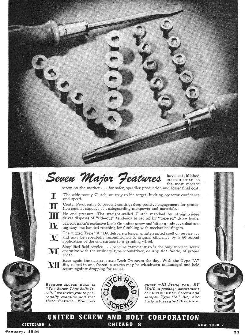 would become the new standard in screw heads and drivers. Clutch head screws are